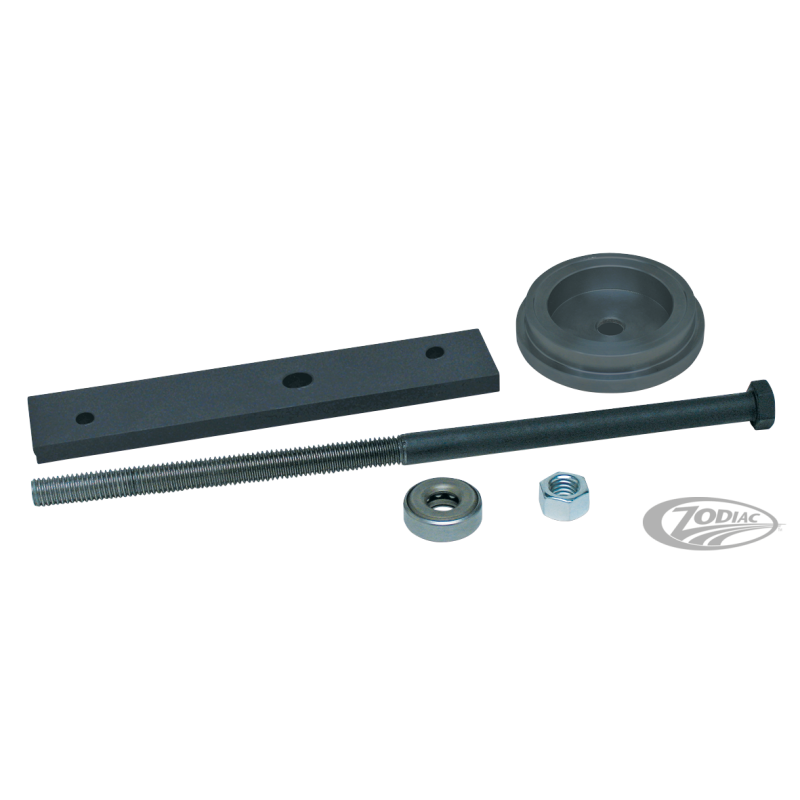 Cet outil sert pour installer l'arbre primaire sur les carters des 2006 Dyna et tous les 2007 au présent Twin Cam avec boite 6 vitesses en utilisant des outils à main. L'outil tiendra le roulement parfaitement à l'équerre par rapport à son logement en éliminant le marquage du logement. Livré avec instructions compréhensibles.