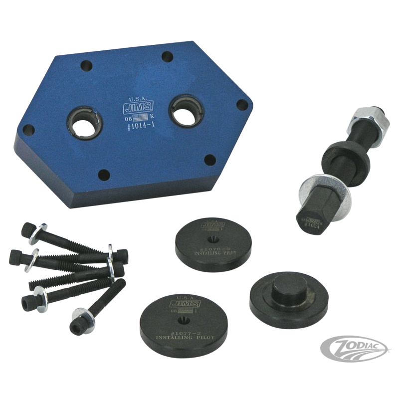 Cet outil est conçu pour poser et enlever les roulements de trappe de boite de vitesse. Avec cet outil vous pouvez également retirer cette trappe sans démonter la boite. Pour Big Twin de 1980-2006 avec boite 5 stock ou 5 et 6 vitesses aftermarket. Fonctionne aussi avec les trappes de boite plus larges que l'origine