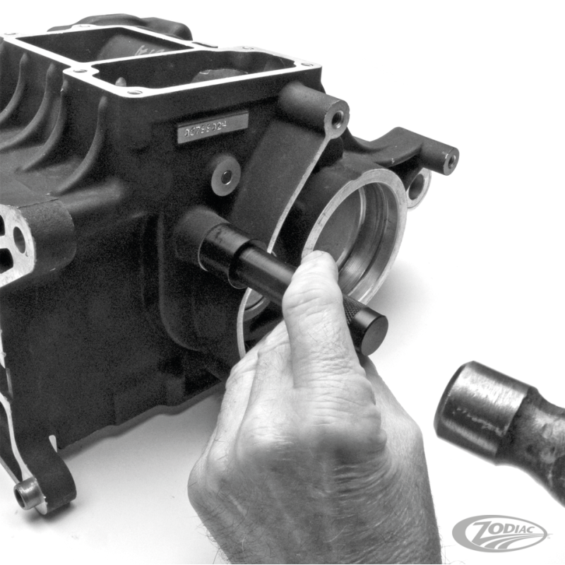 Cet outil sera un gain de temps lors de l'enlèvement et/ou l'installation de la bague du sélecteur de changement de vitesse dans la transmission Cruise Drive à 6 vitesses. Pas besoin de démonter la transmission, il suffit d'utiliser cet outil pratique pour enlever l'ancien et plus tard installer le nouveau manchon de sélecteur de vitesse. 2006 au présent Dyna et 2007 au présent Softail et Touring.