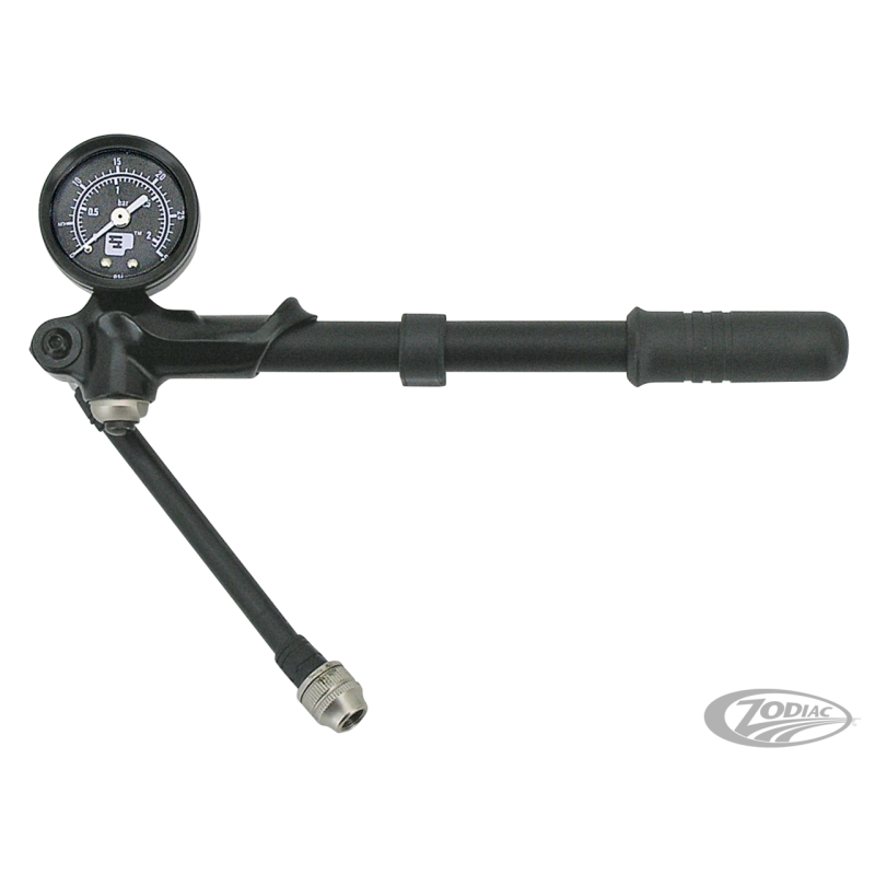 Facile à utiliser et très précise ces pompes peuvent donner jusqu'à 200 PSI de pression. Idéales pour régler les suspensions et fourches pneumatiques. Disponible avec une durite de gonflage rotative et un embout de gonflage sans perte d'air qui rira sur n'importe quelle valve type Schrader. Elles ont un bouton de dégonflage intégré pour ajuster la pression. Disponible avec jauge jusqu'à 30 psi (2 bars) ou 100 psi (6.9 bars).