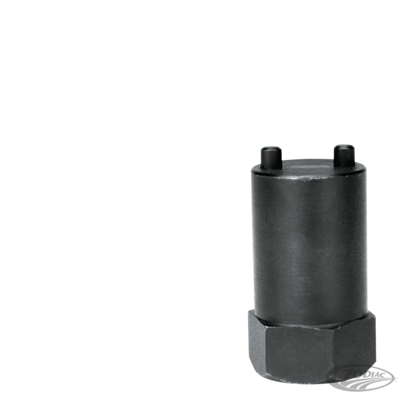 Cet outil a deux dents qui se mettent à l'intérieur du haut du tube de fourche sur la vis de maintient. Vous pourrez alors retirer ou installer cet outil pour entretenir la fourche des premiers Sportsters et Superglides avec frein à tambour.