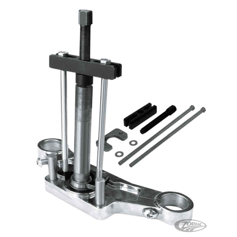 Cet outil est requis pour démonter le roulement inférieur sur toutes les fourches de 1960 au présent des Big Twin et 1982 au présent Sportster et 2002 au présent V-Rod. Pour retirer celui des 1978-1981 Sportster il faut une pièce additionnelle. Cette pièce est vendue séparément.