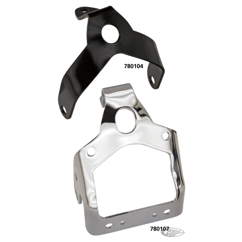 Copies des supports de phare et de klaxon d'origine comme sur les premières fourches Springer. Les dernières fixations peuvent également être utilisés sur les premiers modèles, ils ont simplement quelques trous qui ne servent à rien sur les premiers modèles. Harley fournissait simplement la dernière version sans changer la référence.