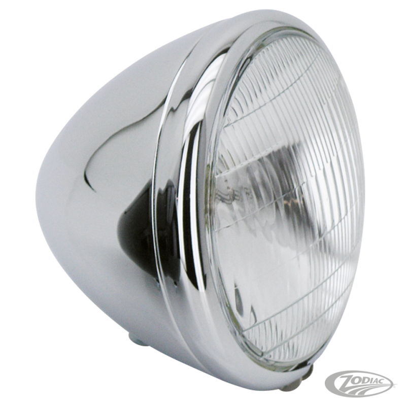 Une reproduction presque exact du phare original Harley-Davidson WLA/C utilisé sur les modèles allant de 1936-1954. La seule différence est invisible et est dans la prise et le réceptacle sur le réflecteur. La construction est superbe tout comme l'original, ce qui assure un montage parfait. Disponible en style original avec finition de peinture noire et collerette chromée ou entièrement chromé. Assemblage de phare chromé.