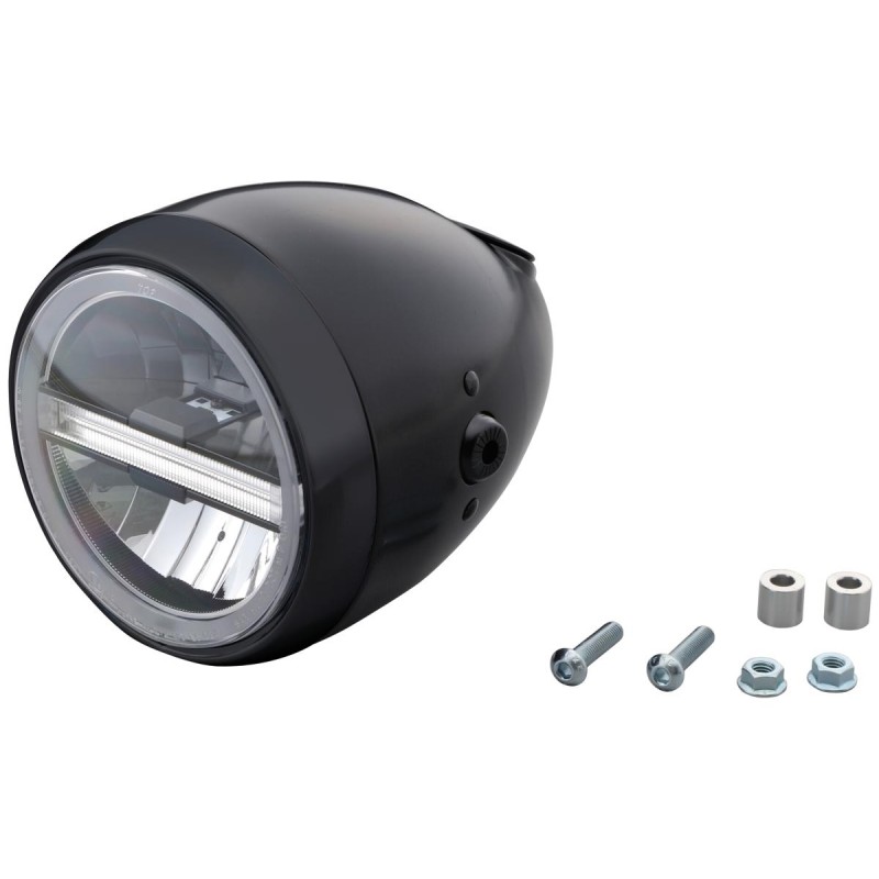 Neo Vintage 5 3/4" Scheinwerfer noir mat poudre enduit réflecteur LED
