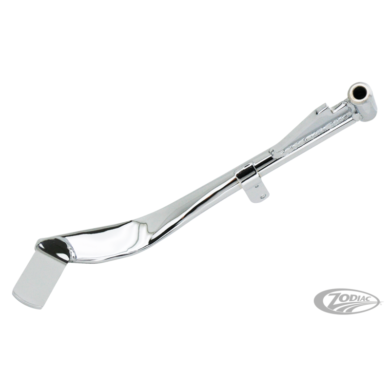 Béquilles Zodiac de remplacement stock qui sont forgées à partir d'acier de haute qualité. Disponible pour la plupart des modèles en longueur stock. Certains modèles sont rallongés pour une utilisation sur les motos avec des fourches rallongées de 4" à 6" (10 à 15 cm) ou en longueur raccourcie pour les motos avec fourche et/ou suspension arrière rabaissée.