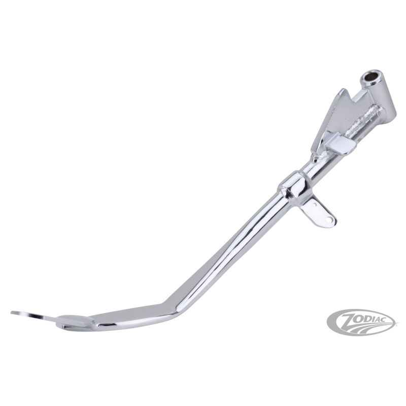 Béquilles Zodiac de remplacement stock qui sont forgées à partir d'acier de haute qualité. Disponible pour la plupart des modèles en longueur stock. Certains modèles sont rallongés pour une utilisation sur les motos avec des fourches rallongées de 4" à 6" (10 à 15 cm) ou en longueur raccourcie pour les motos avec fourche et/ou suspension arrière rabaissée.