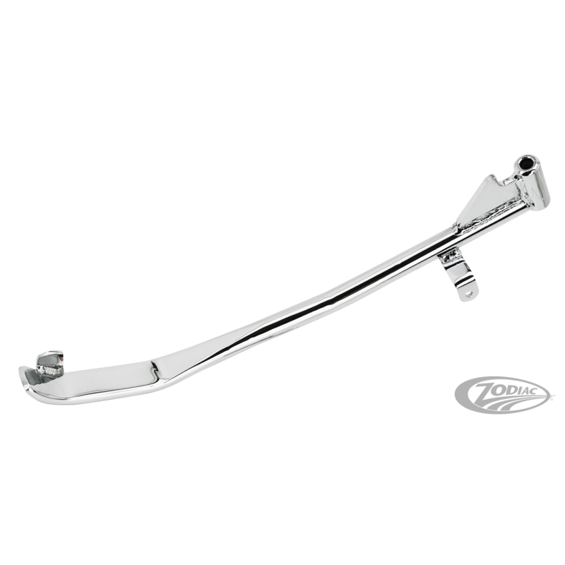 Béquilles Zodiac de remplacement stock qui sont forgées à partir d'acier de haute qualité. Disponible pour la plupart des modèles en longueur stock. Certains modèles sont rallongés pour une utilisation sur les motos avec des fourches rallongées de 4" à 6" (10 à 15 cm) ou en longueur raccourcie pour les motos avec fourche et/ou suspension arrière rabaissée.