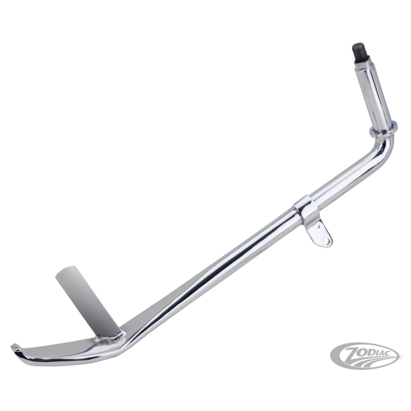 Béquilles Zodiac de remplacement stock qui sont forgées à partir d'acier de haute qualité. Disponible pour la plupart des modèles en longueur stock. Certains modèles sont rallongés pour une utilisation sur les motos avec des fourches rallongées de 4" à 6" (10 à 15 cm) ou en longueur raccourcie pour les motos avec fourche et/ou suspension arrière rabaissée.
