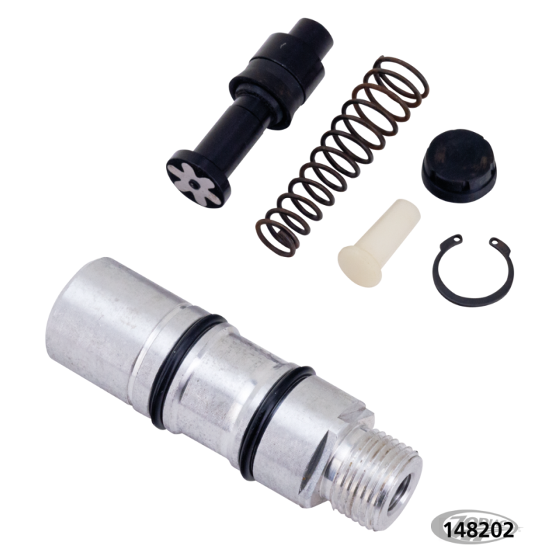 Des kits de réparation complets pour les maîtres-cylindres de frein d'origine et de remplacement d'origine qui comprennent toutes les pièces internes nécessaires à une reconstruction complète. S'utilisent avec du DOT 3, DOT 4 ou DOT 5 mais vous ne devez jamais les mélanger car les trois types sont chimiquement incompatibles. La taille de l'alésage est généralement indiquée hors de vue sur le maître-cylindre. Lorsqu'ils ne sont pas spécifiés pour les kits de reconstruction ABS ou non ABS, ils conviennent aux deux. Veuillez noter que les kits pour les modèles de maître-cylindres avec réservoir déporté ils ne peuvent pas être utilisés pour les maîtres-cylindres avec réservoir intégré et vice versa.