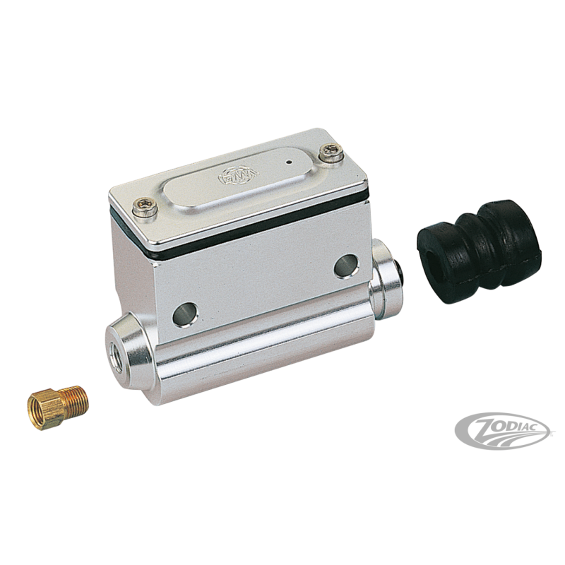 Fabriqués aux Etats-Unis et usinés CNC d'aluminium "billet" de qualité aviation et utilisent les joints d'étanchéité des couvercles supérieurs et des composantes internes de 5/8" en diamètre. Pour modèles FX de la fin de 1979-1983 et peut aussi être installé sur plusieurs applications Custom. Ces maîtrescylindres sont accompagnés de trous de montage soit de type Gagner soit de type Kelsey-Hayes, les deux sont polis.