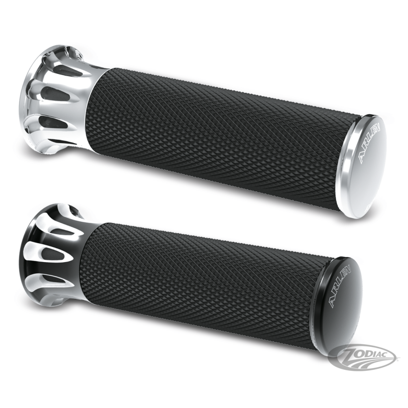 La fusion parfaite entre le grip, le style et le confort. Chaque type de poignée en caoutchouc offre une excellente traction pour que vos mains prennent le contrôle total de votre moto. Les colliers, bagues et embouts sont usinés en aluminium, les accents sont chromés ou noirs anodisé. Tous les kits comprennent un tirage, de la colle et des instructions simples à suivre.