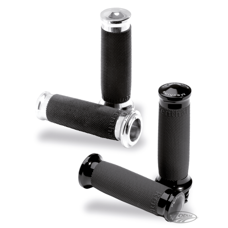 La plupart des gens accordent beaucoup d'attention aux poignées qu'ils utilisent sur leur moto. Elles peuvent vraiment faire la différence, spécialement quand elles sont aussi jolies que les PM. Le caoutchouc qui les entoure absorbe les vibrations moteur et gardent leur grip même quand il pleut. Parfaites avec les commodos PM Contour qui se trouvent ailleurs dans le catalogue.