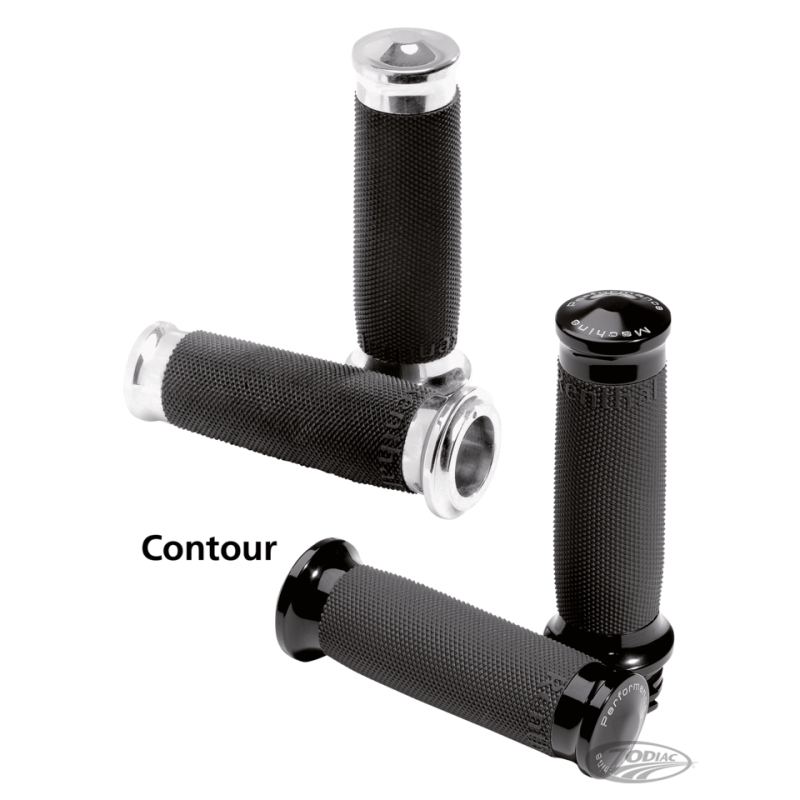 La plupart des gens accordent beaucoup d'attention aux poignées qu'ils utilisent sur leur moto. Elles peuvent vraiment faire la différence, spécialement quand elles sont aussi jolies que les PM. Le caoutchouc qui les entoure absorbe les vibrations moteur et gardent leur grip même quand il pleut. Parfaites avec les commodos PM Contour qui se trouvent ailleurs dans le catalogue.
