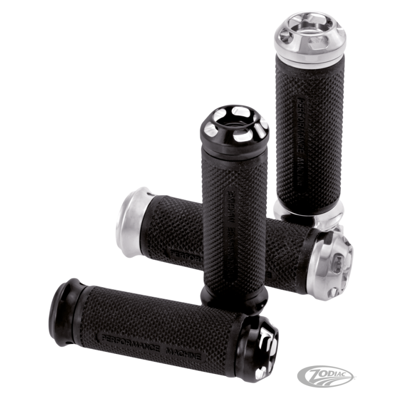 La plupart des gens accordent beaucoup d'attention aux poignées qu'ils utilisent sur leur moto. Elles peuvent vraiment faire la différence, spécialement quand elles sont aussi jolies que les PM. Le caoutchouc qui les entoure absorbe les vibrations moteur et gardent leur grip même quand il pleut. Parfaites avec les commodos PM Contour qui se trouvent ailleurs dans le catalogue.