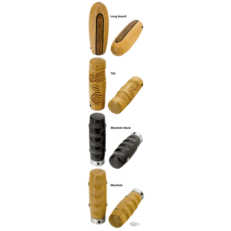 Poignées de guidon universelles en bois naturellement séché. Vendu par jeux pour gauche et droit, le manchon de tirage pour votre application doit être commandée séparément.