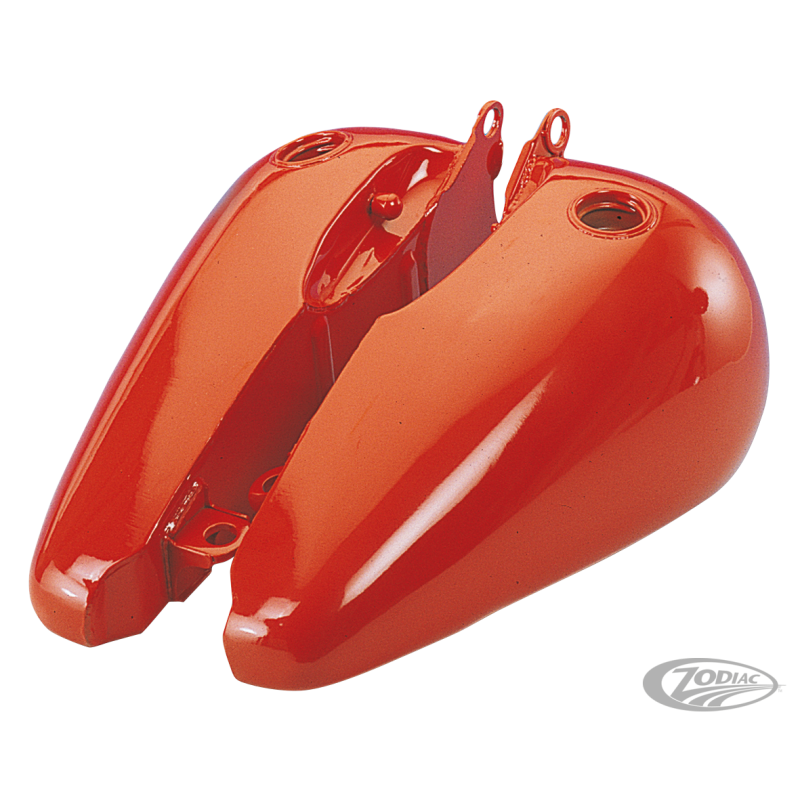Ces réservoirs sont les répliques exactes des derniersmodèles à fixations avec caoutchouc. Ils se montent sur les Softails de 1984-1999 avec réservoirs en deux parties. Ils sont disponibles pour différents types de bouchons comme OEM a vis ou affleurants avec ou sans serrure. Les bouchons style aviation se font en deux types, les anciens types à ouverture rapide et les nouveaux à ouverture rapide avec trappe aviation boulonnée. Ces réservoirs sont de très haute qualité et peuvent servir pour tous remplacements. Disponibles en versions 3.5 (13,2L.) et 5 (18,9L.) gallons. Se monte avec les consoles de FL, FXWG et FXST.