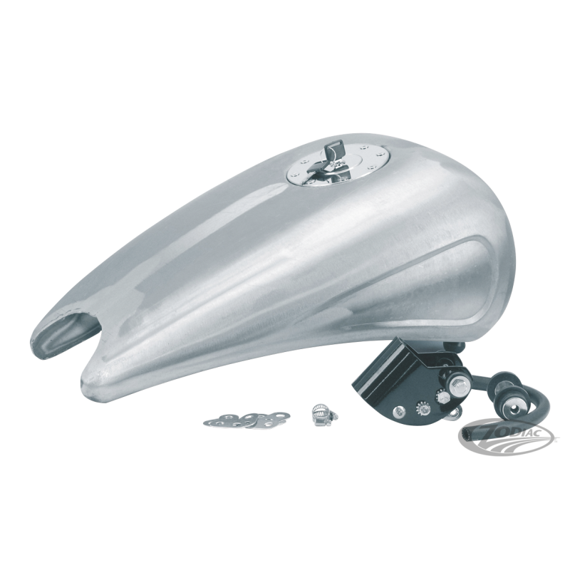 Un look vraiment étonnant, il rallongera l'apparence de votre moto car ce réservoir est rallongé de 2". Il ne s'agit pas d'une pièce rapportée : ce réservoir est bien fait d'une seule pièce sans rajout et il a des empreintes de chaque côté. Notez que la découpe pour la selle conviendra à la plupart des selles étroites comme les Silhouette par exemple. Pour cadres 1984-1999 Softail stock anisi que la plupart des cadres aftermarket Softail. Disponible pour bouchon à vis d'origine ou livré complet avec trappe aviation. Doit être utilisé avec un robinet 13/16" (22mm). Pour faciliter l'installation toute la visserie et les fixations sont fournies.