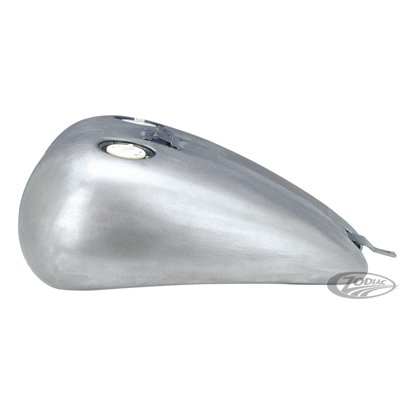 Ces réservoirs sont fabriqués en acier et donneront un autre look à votre Twin Cam Softail, ils conservent votre selle d'origine et sont livrés avec fixations pour la console d'origine. Les réservoirs pour bouchons à vis acceptent les jauges d'origine à gauche ainsi que les bouchons d'origine ou after market à droite. Ces réservoirs existent aussi avec les trappes quart de tour qui sont fournies. Contiennent environ 5.1 gallons (19,3L.) d'essence.