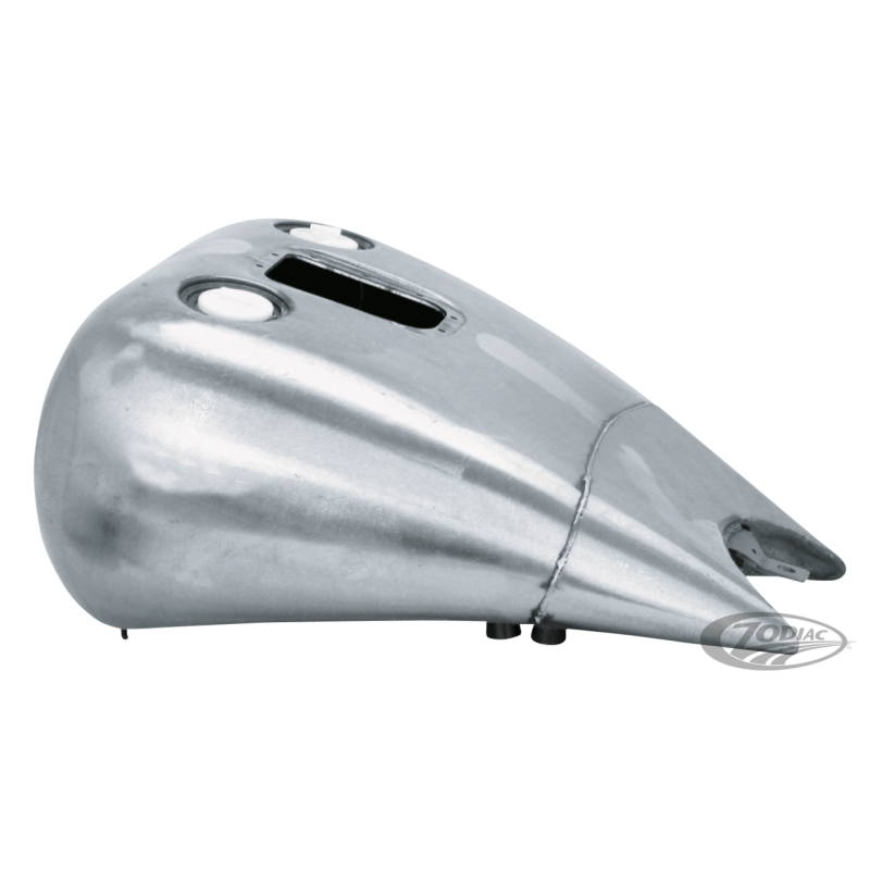 Ces réservoirs sont fabriqués en acier et donneront un look allongé et une ligne fluide à votre Twin Cam Softail, ils nécessitent une selle étroite et sont livrés avec fixations pour la console d'origine. Les réservoirs pour bouchons à vis acceptent les jauges d'origine à gauche ainsi que les bouchons d'origine ou after market à droite. Ces réservoirs existent aussi avec les trappes quart de tour qui sont fournies. Contiennent environ 5.1 gallons (19,3L.) d'essence. Remarque: L'installation sur les modèles 2004 et après nécessite une prise ZPN789782 et ZPN789486. Les modèles 2006 et 2007 nécessitent un support custom pour la jauge de niveau de carburant.
