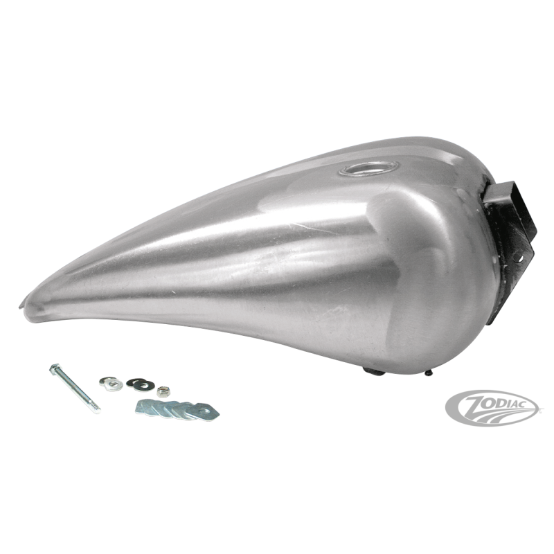 Ces réservoirs rallongés d'une pièce et lisses donneront à votre FXR ce look très long avec une ligne fluide que vous pouvez trouver pour les autres modèles. Ces réservoirs sont fabriqués d'une seule pièce et il ne s'agit pas d'une rallonge soudée. L'arrière du réservoir est échancré pour pouvoir le monter avec les selles étroites du style Silhouette. Ces réservoirs ont des bouchons à vis, quart de tour simple ou double ainsi que les dernières versions avec trappe aviation ou pop up (en chromé ou à peindre) et font 4.2 gallons (15,9L.).