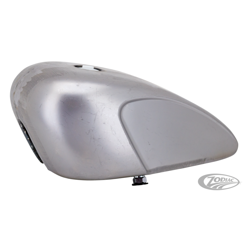 Les réservoirs Zodiac sont bien connus pour leur finition et une qualité fiable. Ces réservoirs Legacy sont des Peanuts ave du caractère. Les renfoncements latéraux sont si beaux que vous ne se soucierez même pas de la capacité. Ces réservoirs custom sont livrés avec des kits de montage 3 pièces à souder avec support et visserie. Les réservoir avec bouchon à vis acceptent les bouchons stock et aftermarket conçus pour les réservoirs stock. Les réservoirs héritage Lynx ont un filetage non stock et sont livrés complets avec un bouchon d'essence style Lynx. Il emporte environ 12.2ltr. fait 52 cm long, a une largeur 27 cm avant, 20 cm hauteur devant et un tunnel large 5 cm. Pour ajouter un vrai morceau de classicisme nous proposons des genouillères en caoutchouc.