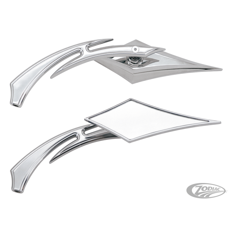 Un excellent mélange de design et de fonctionalité. Les rétroviseurs Scorpion ont une construction solide coulée avec finition chromée. La longueur totale est de 7" ce qui les remonte de 4". Vendus séparément et comprennent toute la visserie nécessaire pour aller sur la plupart des guidons stock et custom.