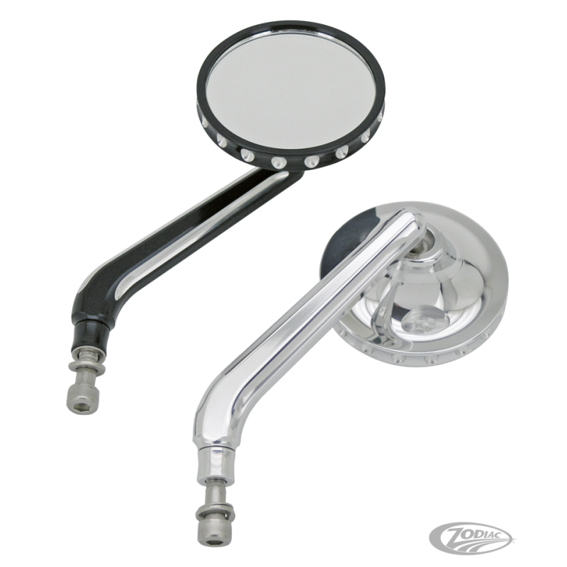 Les rétroviseurs Ken's Factory Classic sont fabriqués avec usiné en aluminium et disponible dans une finition polie ou anodisée noire avec des coupes claires. Les rétroviseurs font 3" diamètre et des tiges de 5" long. Vendu à l'unité.