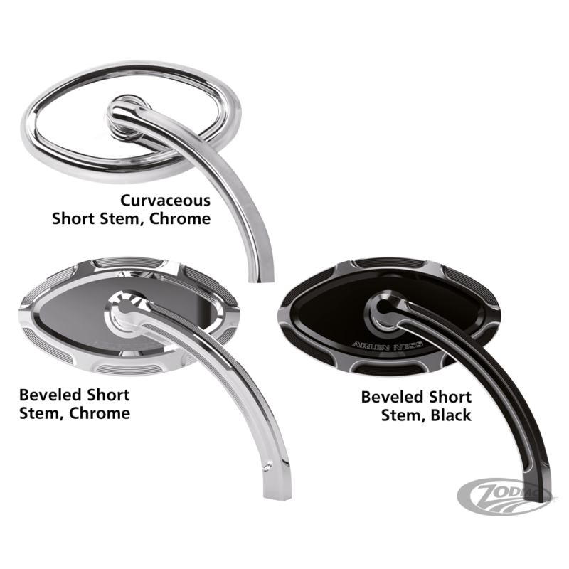 Des rétroviseurs styles et usiné qui ont un pivot en inox qui est dans chaque tige de rétroviseur. Ces rétroviseurs type oeil de chat font en taillle 4 1/2"x2 1/2" ils ont une glace convexe avec un système de resort caché qui garanti de ne pas se desserer avec les vibrations. Toute la visserie nécessaire est incuse.