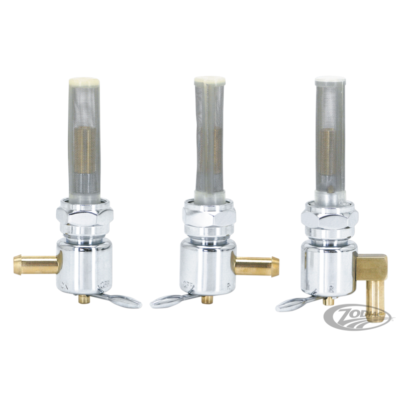 Ces robinets sont polis puis chromés, un must pour tous ceux qui veulent rajouter la touche custom et qui sont soucieux du détail. Les robinets sont conçus pour maximizer le débit en mode normal et en réservef. Il sont en 22mm et vont donc sur tous les modèles 1975-2006 des Big Twin et Sportster à carburateur ainsi que les réservoirs Custom.