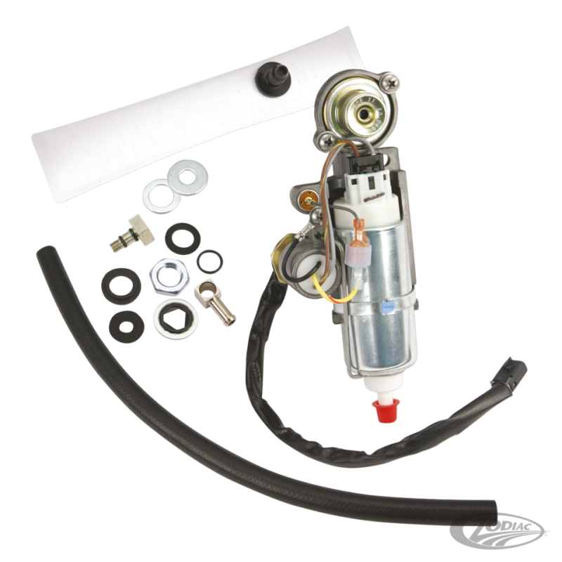 Customiser une machine injection peut vous conduire à l'agonie. Comment trouver un réservoir cool qui peut accepter votre pompe à essence d'origine. Ce design intelligent de pompe de chez S&S vous aidera. Grâce à ses petites dimensions il peut être monté dans n'importe quel réservoir d'origine ou aftermarket. Sa capacité de 45L./heure avec une pression de 4 bars/58 PSI, couvrira les besoins de toutes les motos. La pompe est maintenue par des vis cachées qui donneront le passage pour les sorties et les fils. Un filtre en fibre placé au plus bas point dans le réservoir préviendra la contamination et les dommages à la pompe ou aux injecteurs. Le kit comprend la pompe à essence, les durites, le filtre et la visserie ainsi que les instructions de montage.